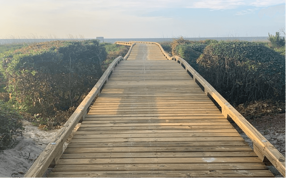 This is the only beach access point managed by Sea Pines CSA that does not have a dedicated beach access boardwalk. The newly installed wooden boardwalk will be approximately 184 feet in length and will allow users to safely traverse over the soft sand along this beach access point. The boardwalk is planned to be approximately 12- 24 inches high with low guardrails and will greatly aid in the protection and preservation of the dunes in this area.