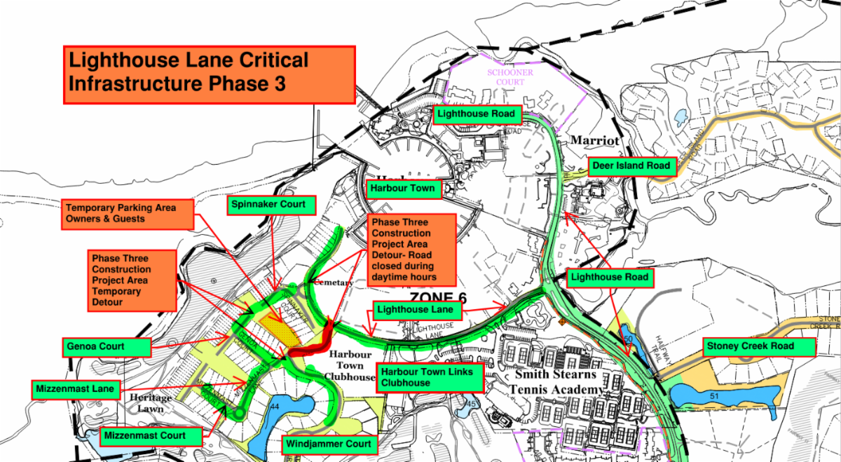 - If you reside along Lighthouse Lane, Spinnaker Court or Mizzenmast Lane, Genoa Court, Mizzenmast Court, Windjammer Court and have scheduled construction or significant deliveries (such as tractor trailers, moving trucks, appliance/furniture deliveries, etc.) planned during the project timeframe, please contact Sea Pines Security at 843.671.7170 for prior approval and traffic coordination.