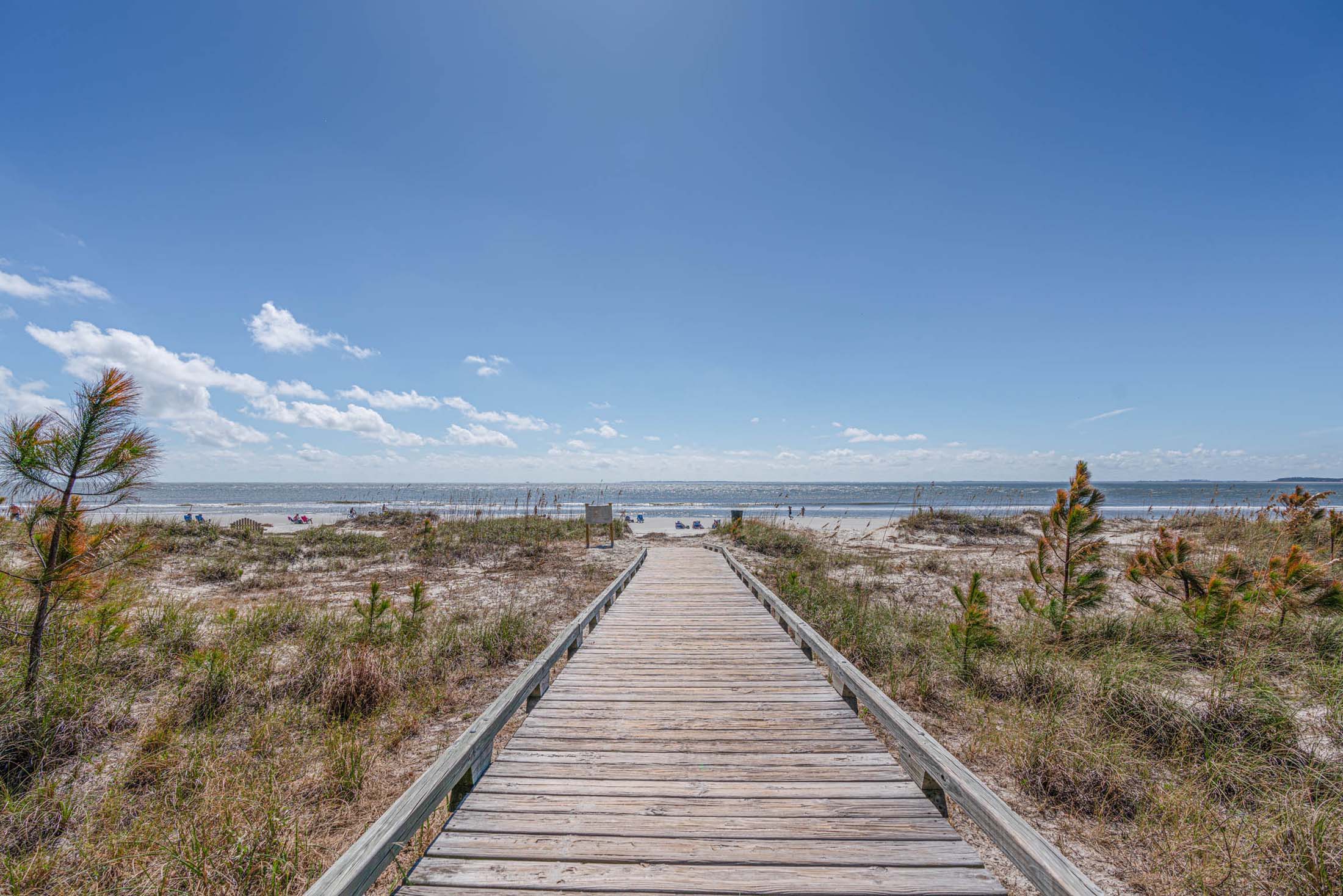 Tower Beach is located at 99 South Sea Pines Drive, underneath the big blue water tower at the southern tip of Sea Pines off of Sea Pines Drive. This facility is designated for the exclusive use of Sea Pines property owners and their accompanied guest. Completed in 2014, Tower Beach offers outdoor grills, picnic tables, a shaded pavilion, restrooms, water fountains, an outdoor shower and a boardwalk with direct beach access.