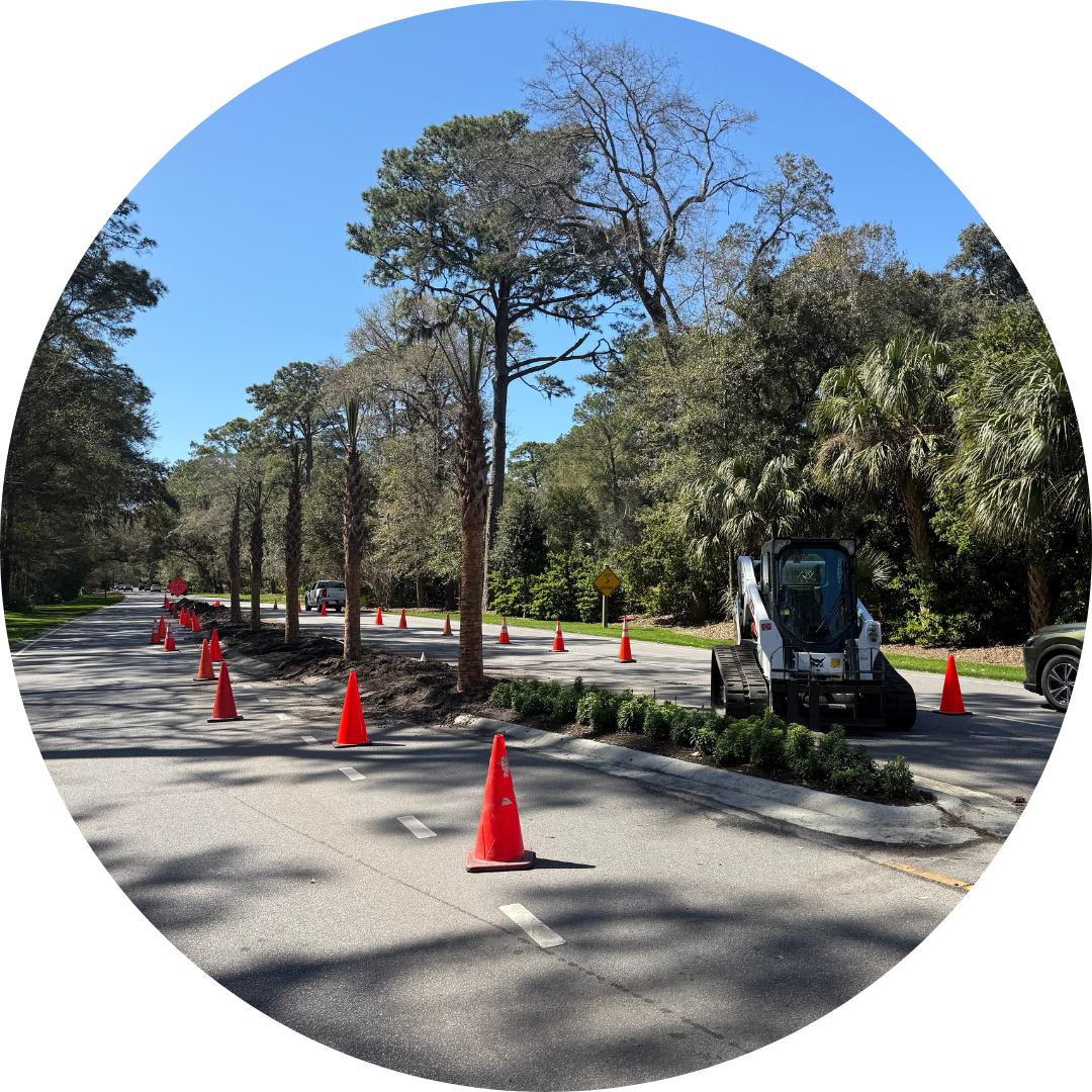 Roadside Maintenance: Greenwood Drive landscaping enhancements (pictured) will continue into next week working near Lot 1 and then progressing to the trolley lot entrance. Roadside mulching in select areas is also in progress.