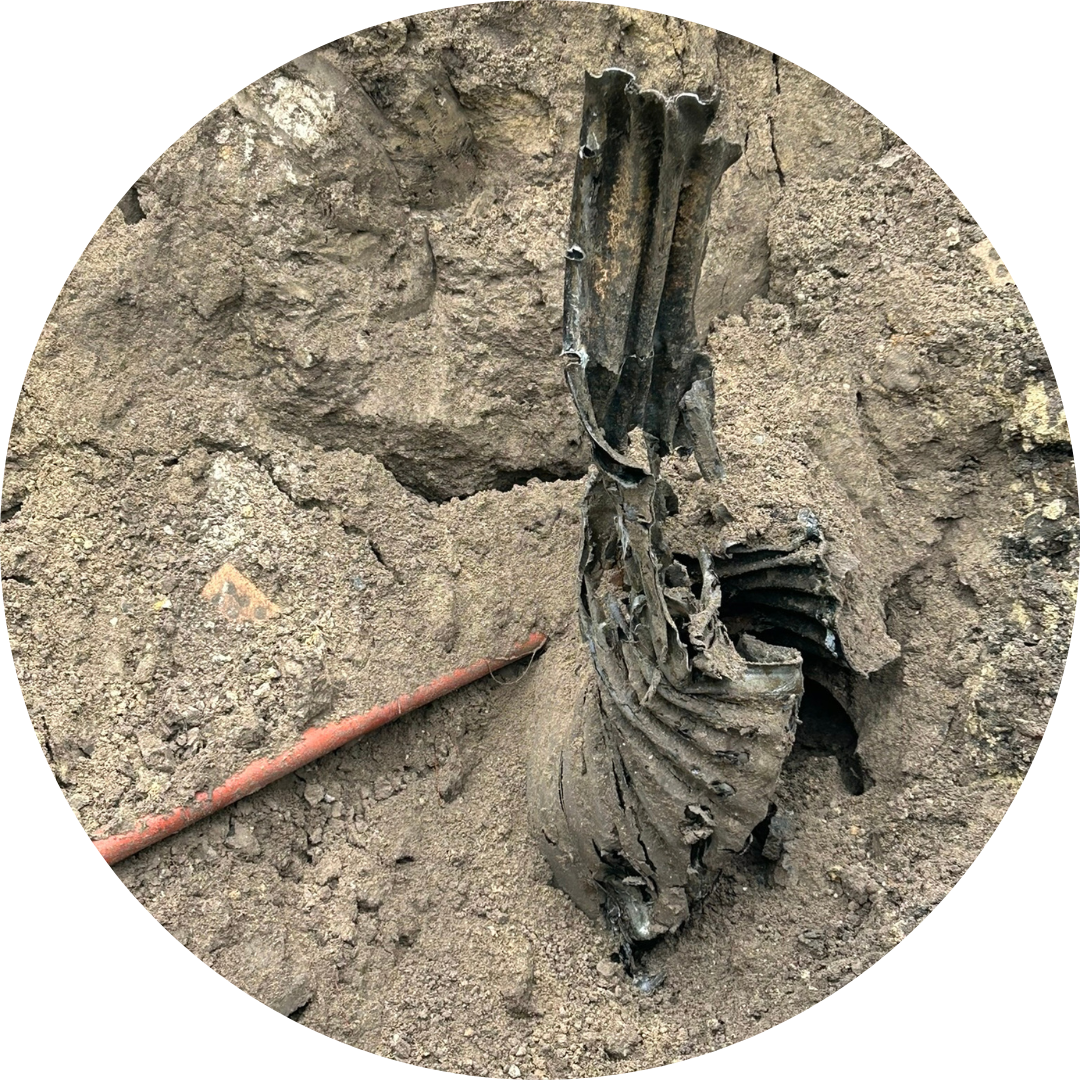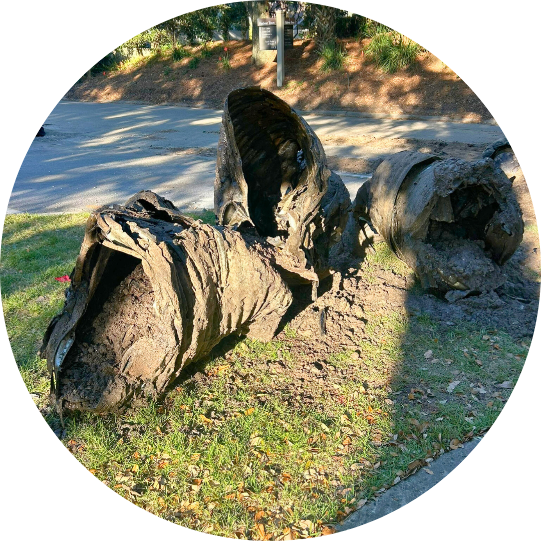 Lagoon Bank Stabilization Practices: Sea Pines CSA utilizes a vegetative lagoon bank stabilization approach to help maintain shoreline integrity. This method uses vegetation to absorb excess nutrients carried by stormwater runoff, while also reinforcing the lagoon banks to prevent erosion and protect nearby roadways and leisure trails. One of the most significant erosive forces along the bank is the persistent lapping of water. These subtle wave actions gradually weaken saturated soils just below the water’s surface, causing soil particles to loosen and erode. Much of this erosion occurs underwater and may go unnoticed until the visible portion of the bank collapses. (Pictured: Severe bank erosion along the lagoon in proximity to North and South Live Oak Road)